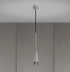 En pendelspot lavet af stenpulverlakeret metal med solide ståldetaljer.