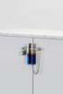 En solid vandret låsestang i rustfrit stål har vores karakteristiske lineare riflemønster og er fastgjort med en elegant modekæde i stål. Låsestangen kan sikres på plads med vores solide stål hængelås med 'B+P'-logo indgraveret.