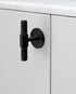 En T-bar lavet af massivt sort anodiseret metal. Denne T-bar har vores signatur, diamond-cut, mønster på kryds og tværs. Den leveres komplet med en solid, sort metal, cirkulær bagplade og fastgøres med karakteristiske sorte skruer.